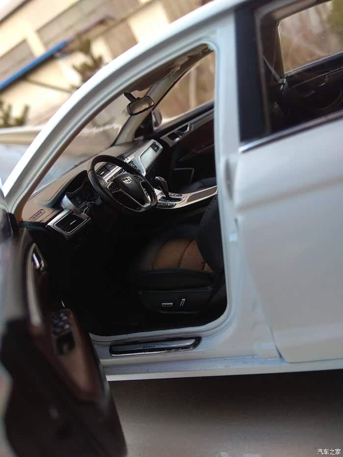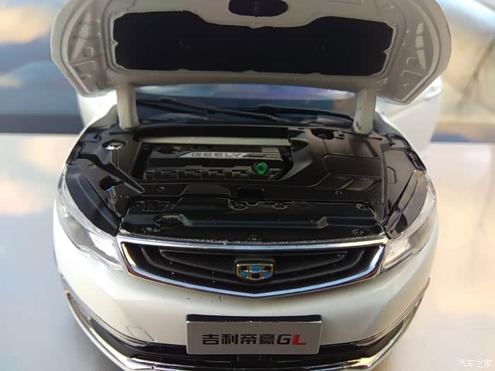 一直以来都想拥有一辆帝豪GL的车模, 最近有幸喜得一辆帝豪GL1:18比例的原车车模,如愿以偿的得到一辆帝豪GL车模,非常的高兴和喜欢,车模做工非常精致,四个车门,发动机舱盖,后备箱都可以打开,内饰做工看上去跟原车一模一样,非常的漂亮。