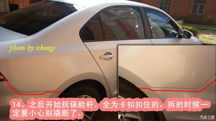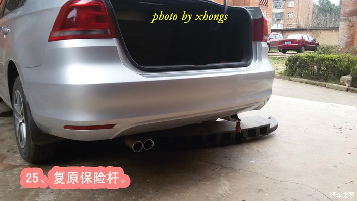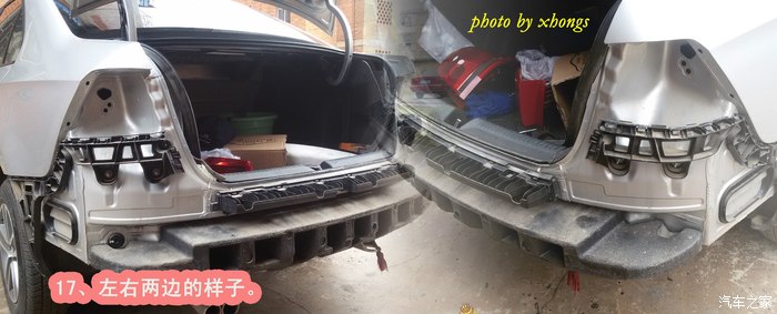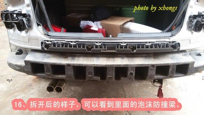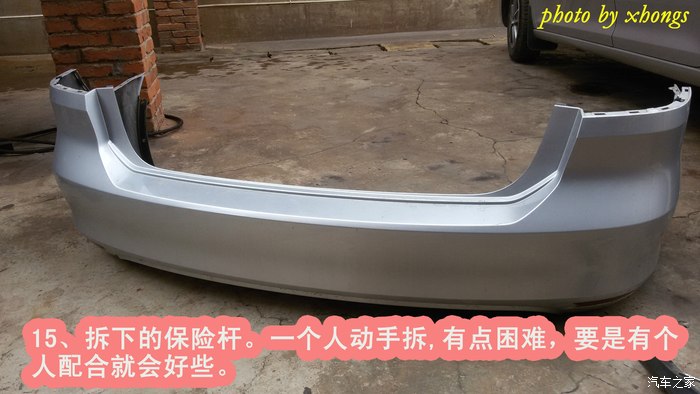 说实话,一个人自己动手拆后保险杆,需要两边同时开工,确实挺难的;要是有一个人帮着在旁边扶着都会好一些。至于拆开后加装防撞梁,很简单的,大家都能完成。总共历时两个半小时。
