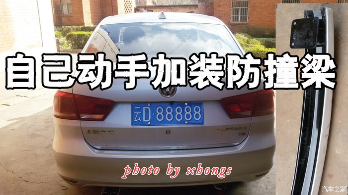 自己的车,总想着自己动手加装点什么,继上回改装了行车电脑成功之后,又在车上加装了好多东西,比如鲨鱼尾天线、空调旋钮、中央扶手箱、方向盘亮片、迎宾射灯、迎宾踏板、门锁保护片、后备箱亮条、后反光片、行车记录仪、电子狗、氙气大灯等十几样了。从安全上讲,看到大众那个泡沫塑料的防撞梁,实在有点心寒,跑在路上都有点提心吊胆,于是决定自己加装防撞梁,让自己给自己一些安慰,心里踏实点。