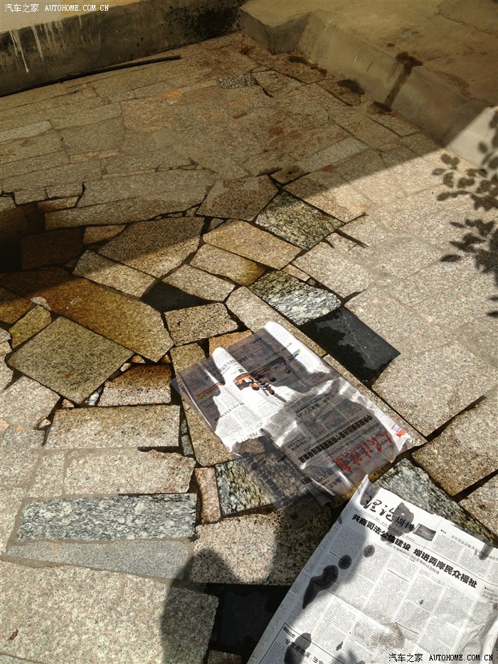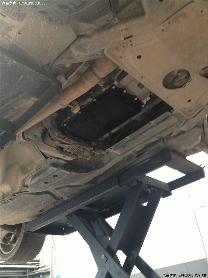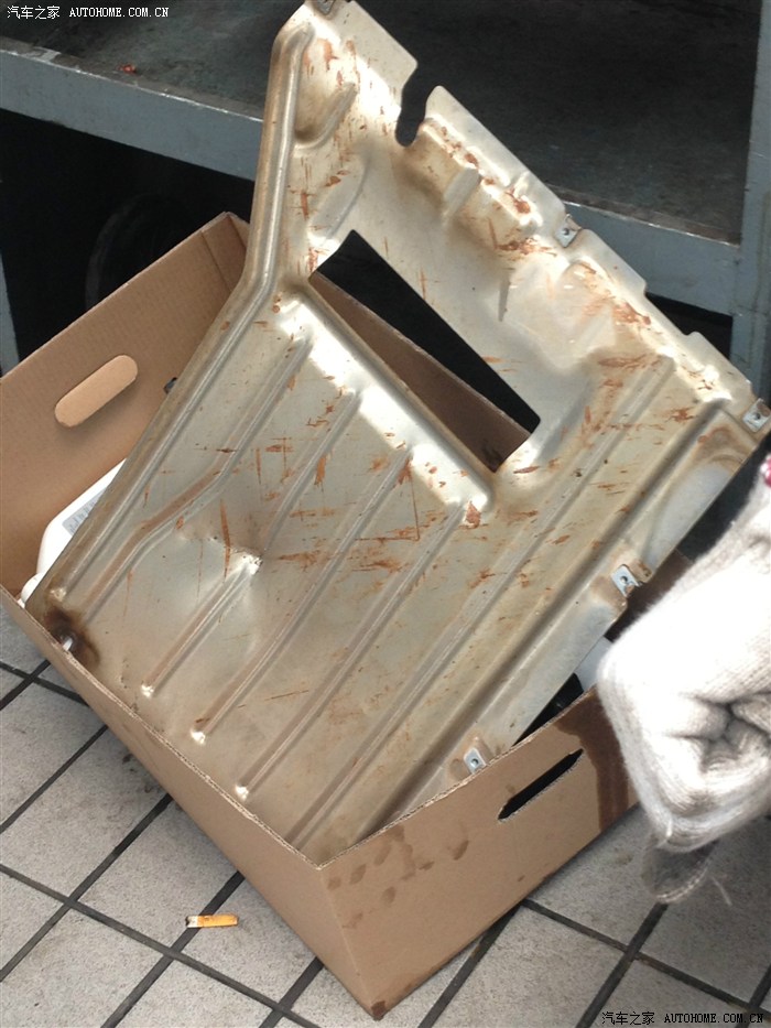 停车后看了看,车头发动机护板没事,后面变速箱护板有点凹进去2公分,不多,,没在意,,晚上车子停回车库,第二天早上就吓一大跳,,车库满地是油,,,晕了。。。。