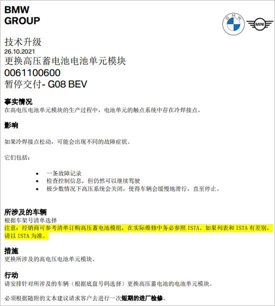 关于这次电池组缺陷问题召回的数量很多,具体问题主机厂和4S店如何解决,问题如下: