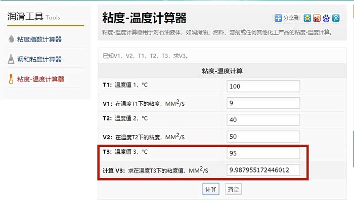 计算得到,油温95°C时粘度为 9.98 cSt,非常接近发动机最理想的润滑粘度 10 cSt。