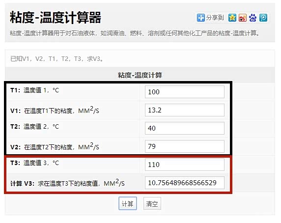 一款5W40的机油,100°C粘度为13.2 cSt,那么110°C粘度为10.75 cSt。