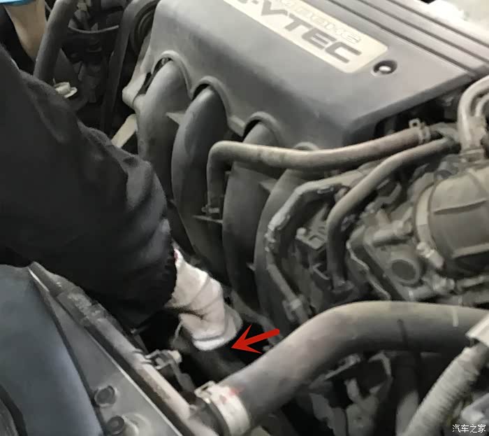放冷却液,师傅直接拔出水箱(散热器)和发动机连接的水管。
