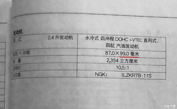 思铂睿的发动机K24Z5,缸径87毫米,行程99毫米,行程大于缸径,属(长冲程)发动机。