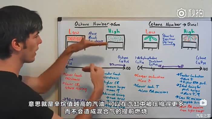 汽油辛烷值越高,混合气(空气和汽油)可被压缩的更多。