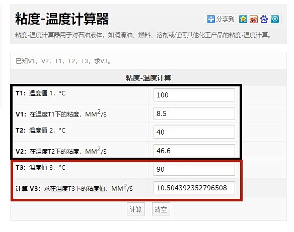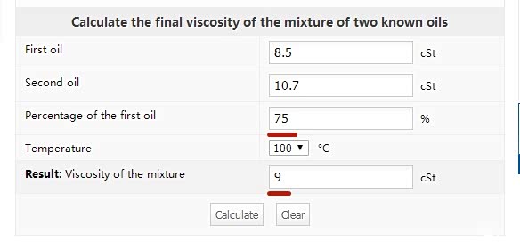 一款5W20的机油,100°C粘度为8.5 cSt,那么90°C粘度为10.5 cSt。