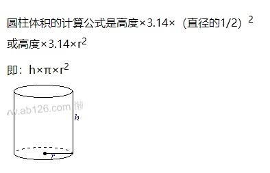 圆柱体积计算公式:高度×圆周率×(直径的1/2)²。