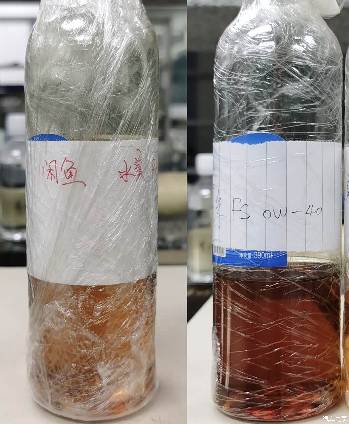 ,假货美版美孚FS 0W-40,一起看一下这款假货基础指标如何,同时对比一下两者的包装看看有什么区别。检测只对样品负责,样品由车友“BongN”提供,矿泉水瓶装。