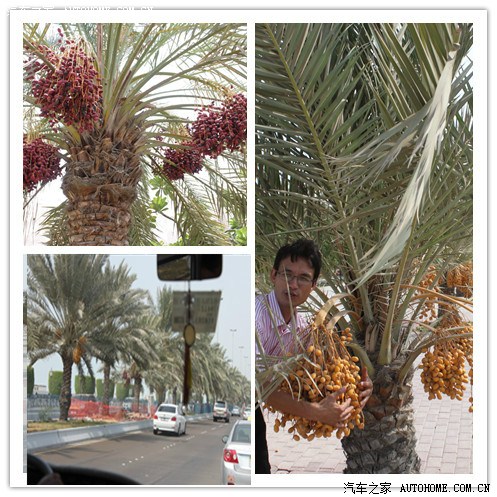 这些景观树也颇具中东国家特色。但因为水土的原因还是品种的问题不得而知,它长出的椰枣及其微小,不象迪拜那边的丰收(如下图)
