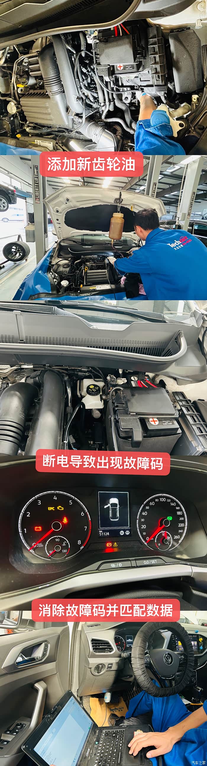 然后将2升新的齿轮油加到底部有油管的壶中,利用液位差将齿轮油加入到变速箱中。因为更换机电单元断电,仪表盘上会有故障码,用电脑逐一消除,并匹配一下。