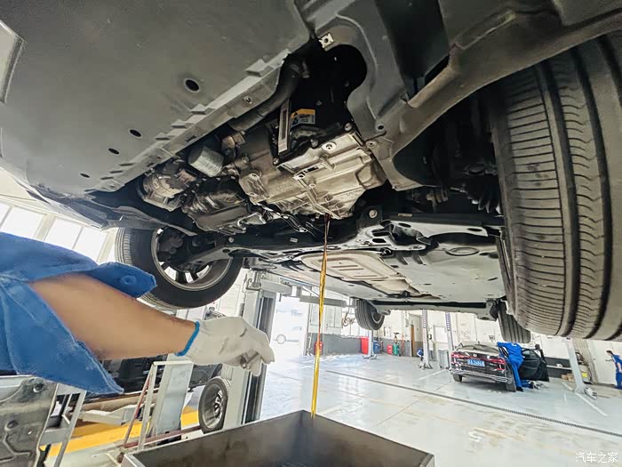 在21年7月1日提车整两年时,车辆行驶44422公里,给途铠做第五次保养时,发现车辆底盘(变速箱油底壳下的变速箱机电单元)有油迹。按照程序先用清洗剂 将油迹清洗干净,使用一段时间再后观察情况,如果还有油迹就更换机电单元总成。