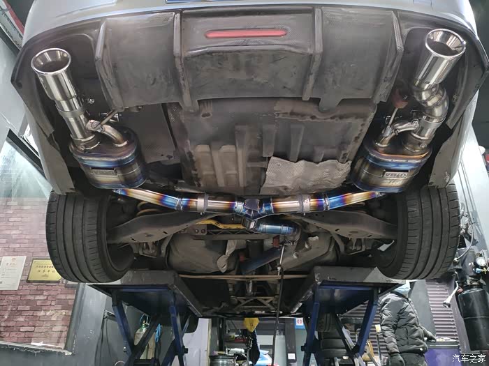 刚改完四驱系统后地盘照片(忽略店里临时改位置焊接的钢管排气,定制排气还未到)