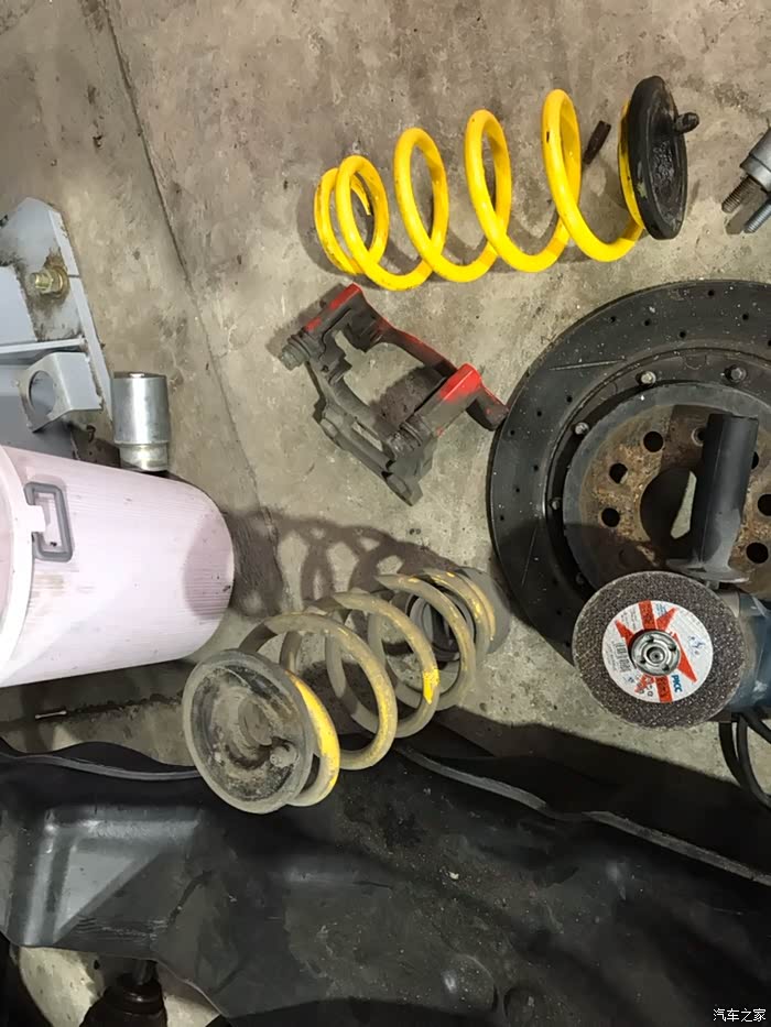 换下的前驱防倾杆和弹坏(都是黄色好货)