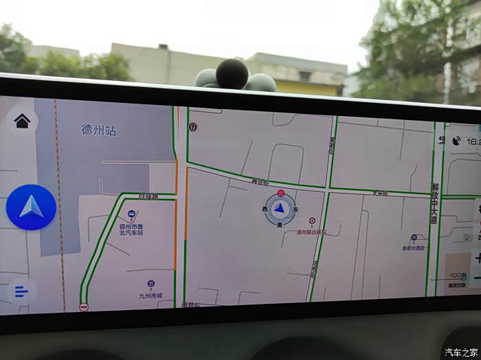 车机版高德地图,实测精准度不错。支持目的地附近停车场搜索功能。
