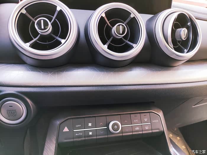 下方分区自动空调操控按钮采用悬浮式设计,节约出一部分空间