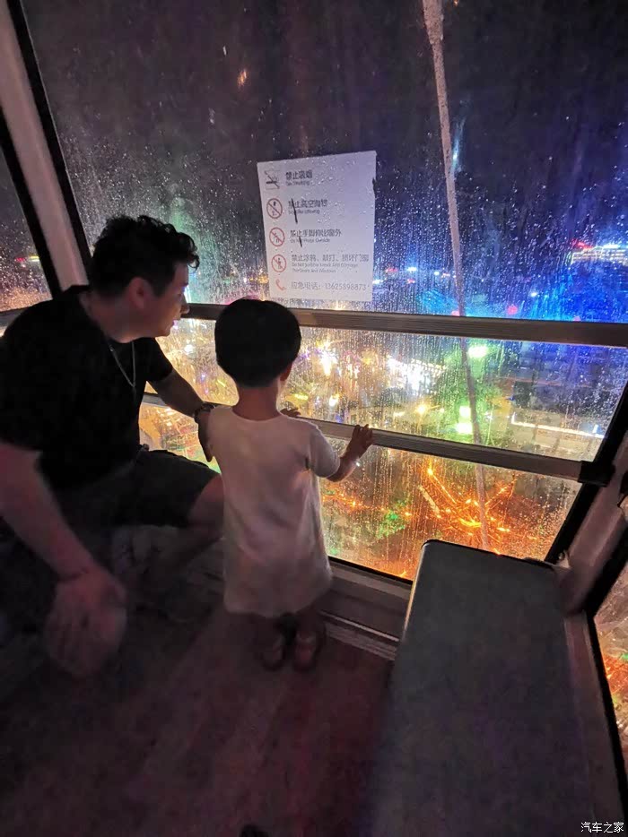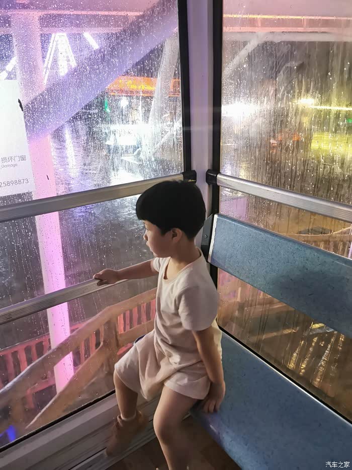 娃2小时之后睡醒了,于是重新排队二刷摩天轮,此时已经晚上9点了,雨还是没停。