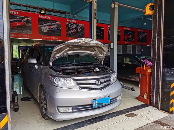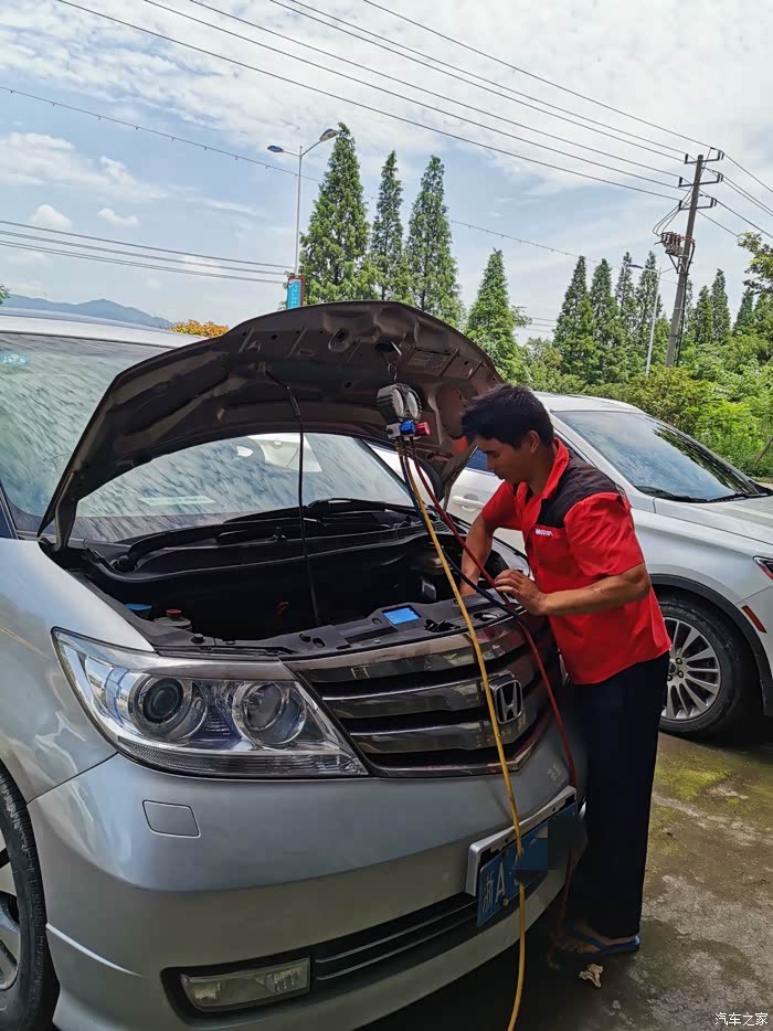 第二天中午出发回杭,开了10分钟后,空调不制冷,好不容易找到一个修理厂,检测一下再说。