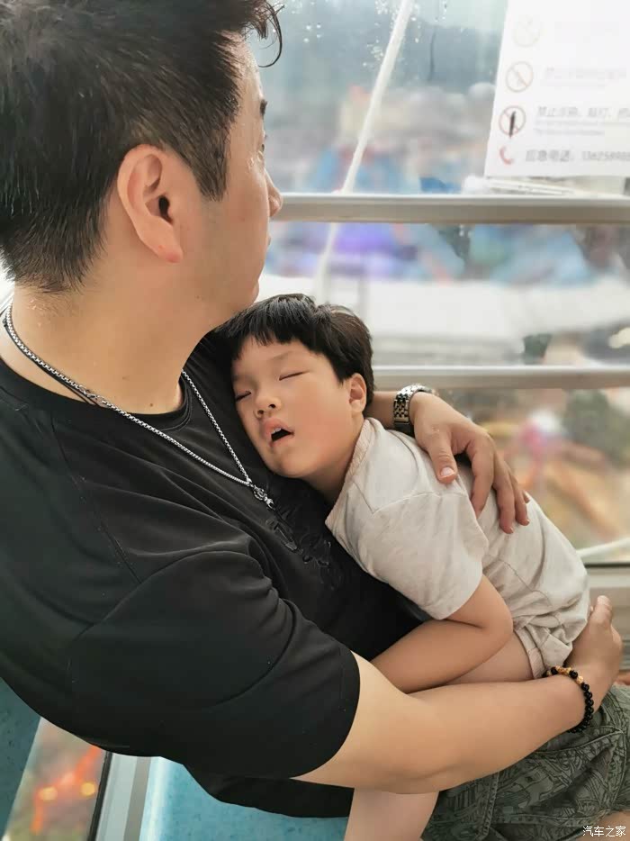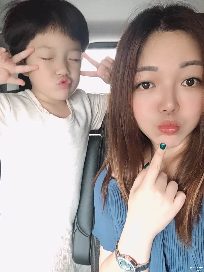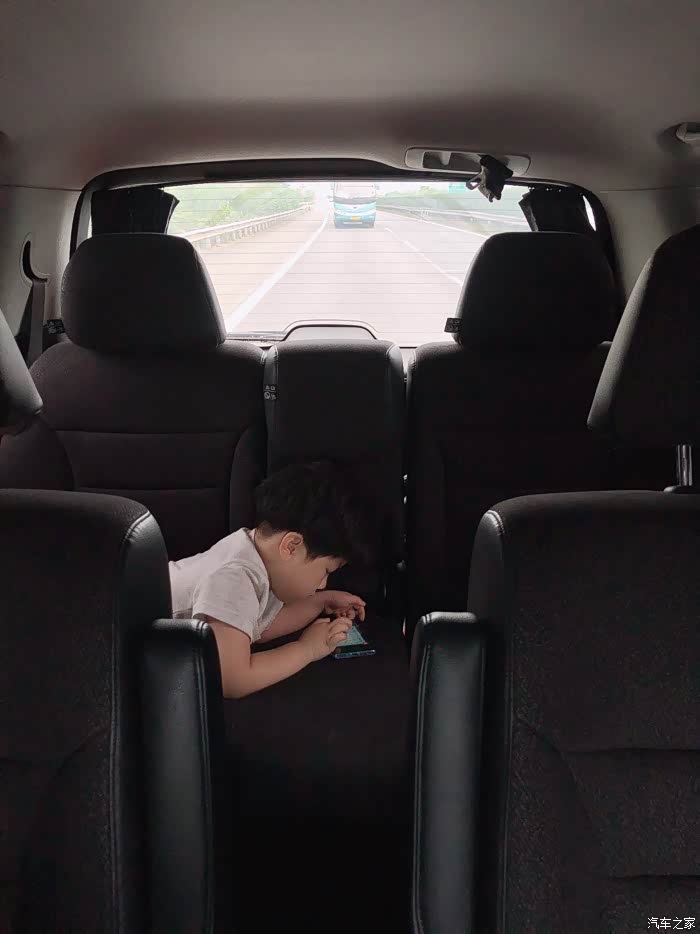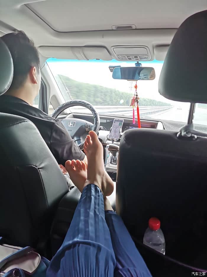 今天不当车夫了,享受一下二排,没有腿托,可爱的小脚丫只能放到扶手箱上去熏一下车夫了