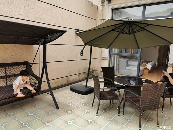 入住横店梦幻谷附近酒店,房间有露台,娃很喜欢。