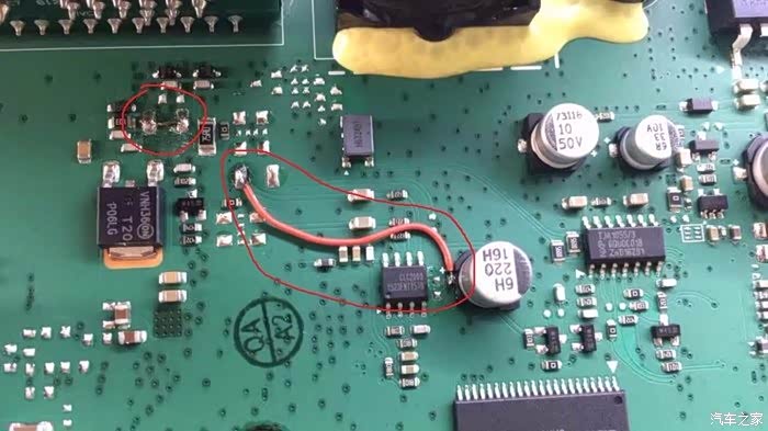 也有其他车友提供了在电路板飞线的办法,但是这种方法我刚刚试过有效,同样仅供参考。借用 简单快乐34 和 birmingham 提供的图。
