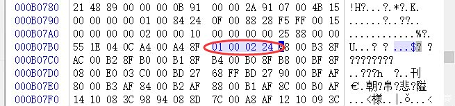 将地址“B07B8”原值“25 10 20 02”修改为“01 00 02 24”,之后依次单击“文件”——“保存”即可。