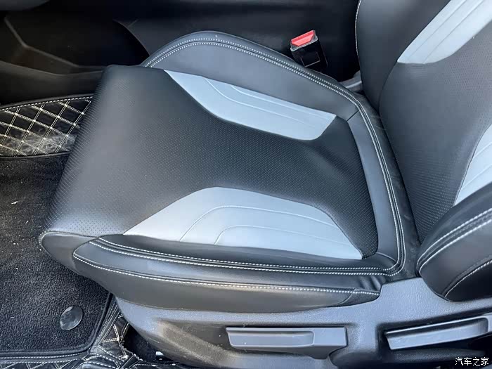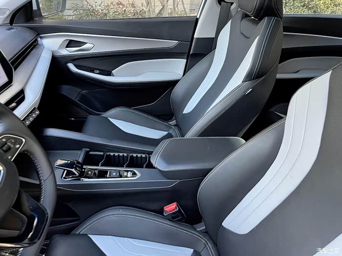 如果说媳妇是被它的颜值所折服的话,那么,我就是被它的内在所吸引了。进入到车内,极具运动的内饰感立马就上来了,车内大量的运用了皮质的材质,手感非常的好,中控上是橙色的线条,还有缝线以及安全带,时尚又运动。、