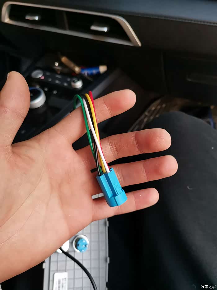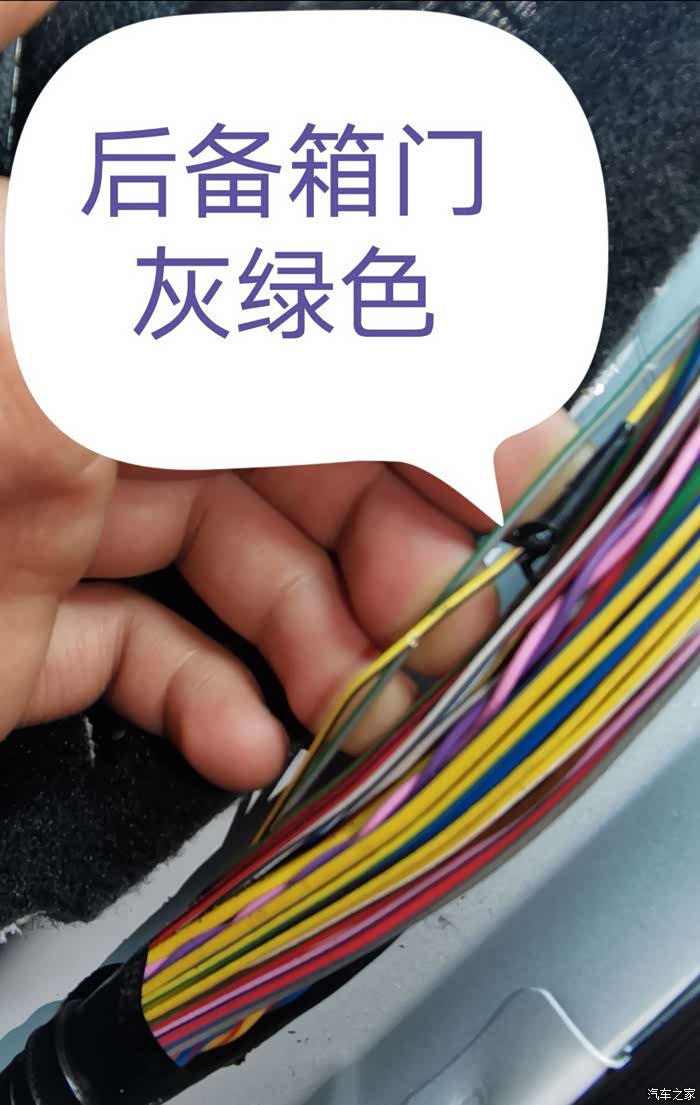 把后备箱门板拆开,把牌照灯的插头拔下来,红黑色线是牌照灯。后备箱门板上的灯正极接在这上面。门锁上有灰绿色的线是后备箱线,负极接到这里,这样开后备箱灯就亮了。