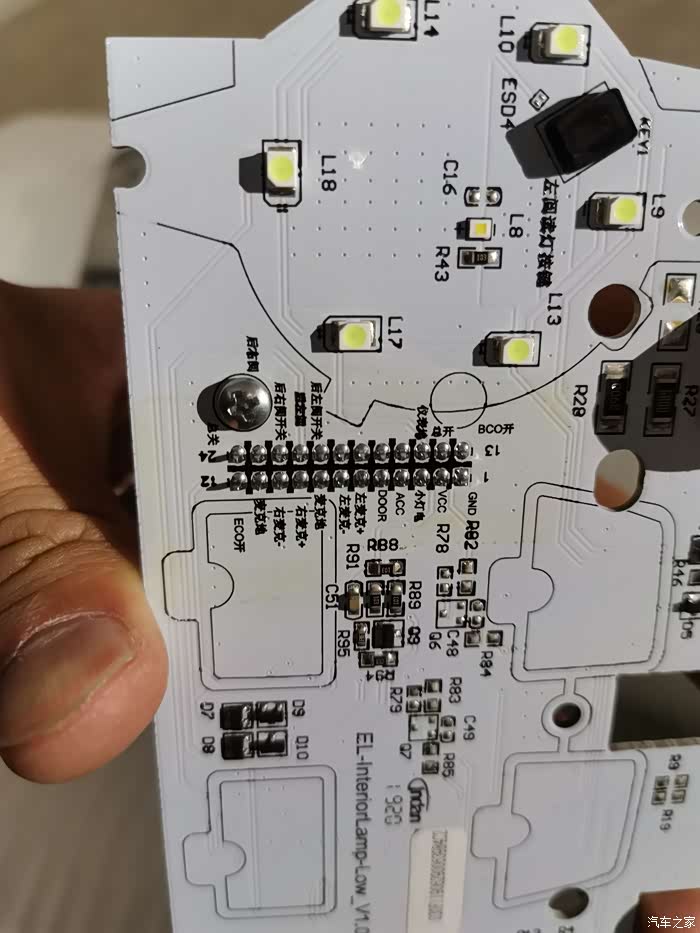 比亚迪的技术还可以,都集成在一个板上了。我把室内灯的正极接到小灯电上,灯开关的常开触点上接的是第五个door门线上。