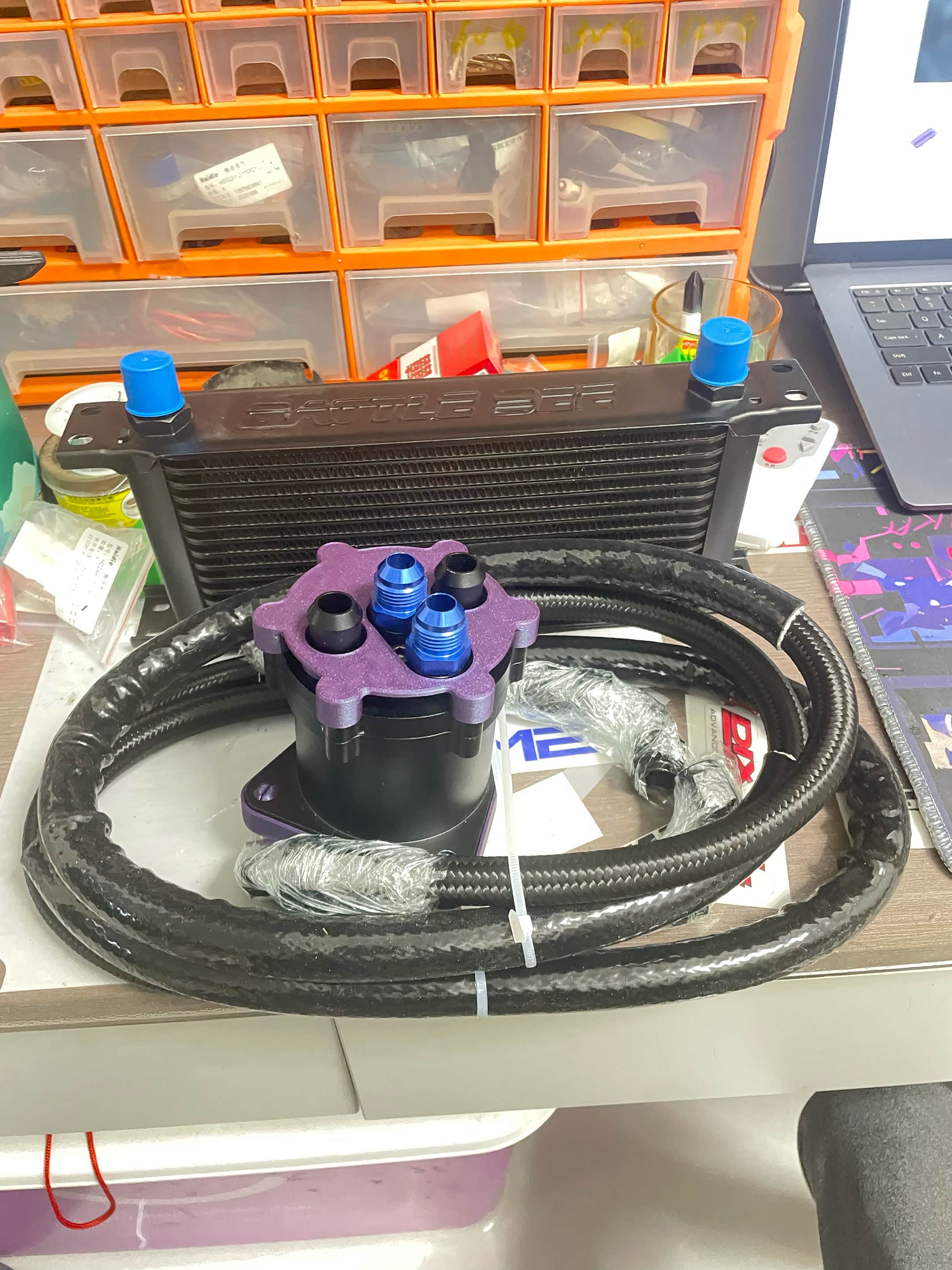 反复研究了原厂的散热器结构 最终设计成了现在的结构 变速箱油和防冻液才用了独立循环 独立的散热系统 又能保证冷车升温快 又能提升热车散热效率 说起来是有矛盾的 但是不要急 听我慢慢道来 冷车时候发动机采用的小循环系统 水温升的快 就可以带动变速箱油升温 热车以后如果超过原厂设定温度以后 就会开始大循环系统加上变速箱油的独立散热 就可以保证变速箱油可以更快的降温
