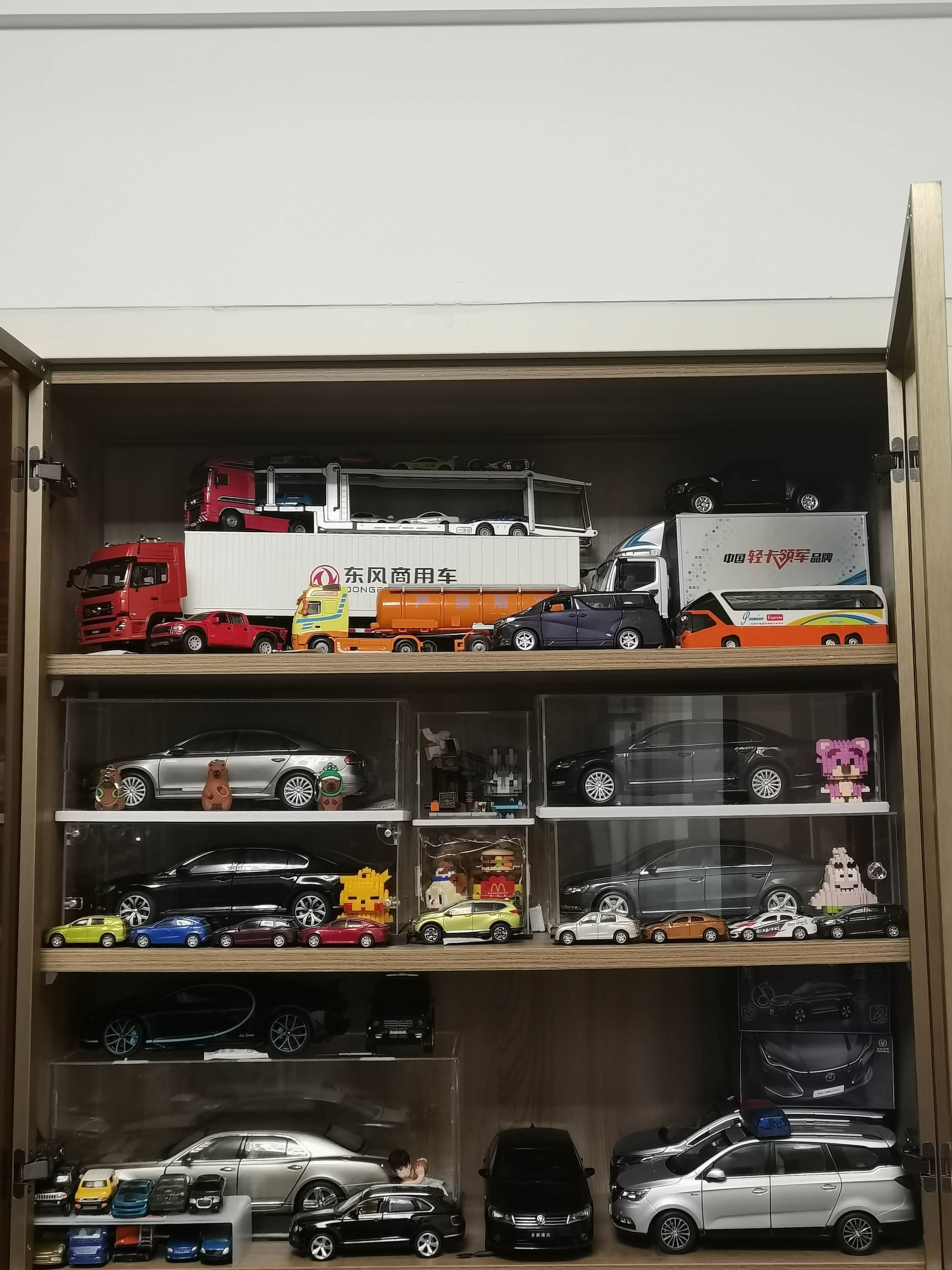 手头的模型五花八门,拖拉机、卡车、跑车、皮卡啥都有,比例从1:18到1:64都齐。个人觉得1:32的埃尔法最适合新手,六开门设计,还