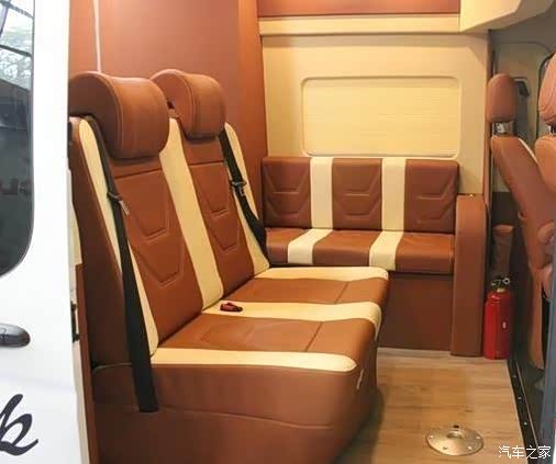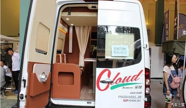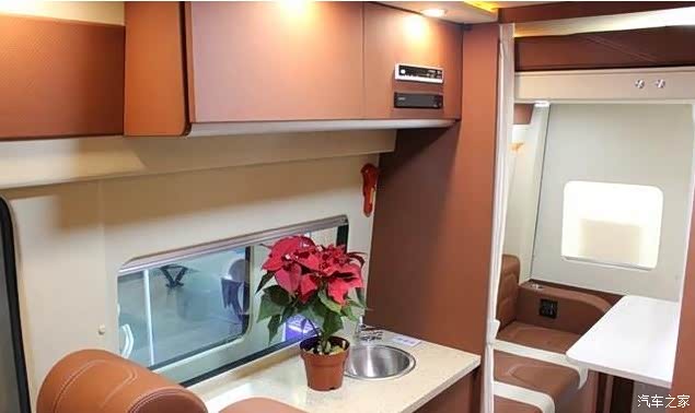 这款克劳德江淮星锐是基于江淮底盘打造而成,全车尺寸为5990×2098×2850(毫米),核载4人,能上蓝牌,C本即可驾驶。该车搭载了一款排量为2.7升的康明斯柴油发动机,功率110千瓦,满足国五排放标准,最高车速限制在130公里/小时。卡座沙发后排先是梳妆台和水槽,配备90升车载冰箱,对面是卫生间,再往后又看到一排卡座沙发。卡座沙发中间的升降桌可以降低后变成一张双人床,上方还配有升降床。