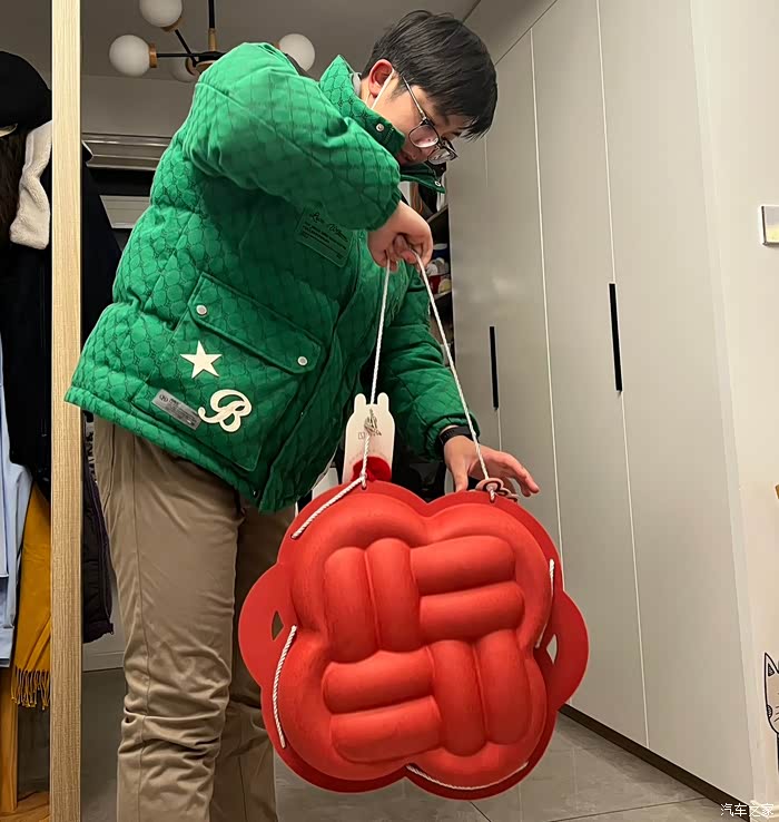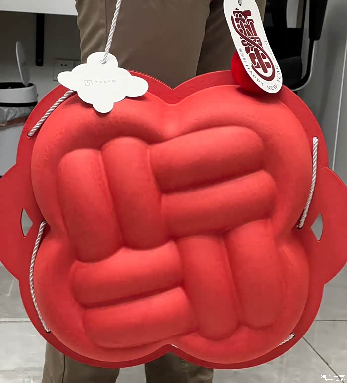 好啦~不卖关子了,赶紧拆开包装,巨大红色中国结样式的礼盒映入眼帘,沉甸甸的很有分量感,喜庆的中国红让我的心里暖暖的,包装都这么用心,看样子极氪的小伙伴们一定是把这个新年礼秘密瞒了我们很久了,就留着新年给我们达人们一个大惊喜,极氪机灵的小伙伴们,你们可真是小可爱蛋。