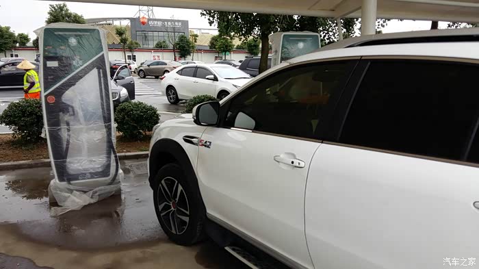 与群主老花(网名,实际姓程)碰面后,一会从后面开来了一辆白唐,说是我的。对比了下车架号没错。车上是下雨淋过的水印,怪脏,估计是停树下的,还有树叶落上面。前面院子没树,车也都稍干净点。我家女儿不高兴了,盯着老花不停地问:为什么我们的车最脏?老花也不停的给她解释:等会洗一下就干净了。到财务交余款,领牌照、充电包等,上牌。问老花:当初说送的镀膜怎么没有镀?答:4S店不做这个,等会带你去别一地方做,车款没交清,车子不让开走。好吧,车子我也没细看,走吧,赶快镀膜去,今天我还想先走一段路呢。出了门加油加满,270元,单价没看。跟着老花的秦去镀膜,车子电只有30%,直接混动。慢慢感受了一下操控,直接感受,动力好,方向很轻,松油门减速明显。