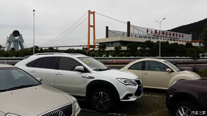 在金塘服务区,与大桥合个影,后面那管委会楼里有大桥博物馆,详细介绍了金塘和西堠门大桥的结构和建造过程。