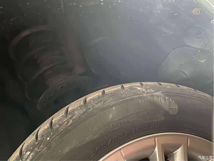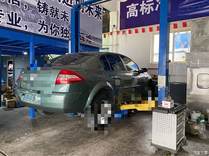 第一天提车回来先试着跑了一圈感受一下车况,然后就近在汽修厂更换了变速箱油。车子上架后看了一下底盘比较不错,几个轮子里面很干净,初感觉挺好的。