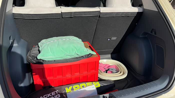 后备箱空间也很大,,后排放倒睡在车里也不是问题!哈哈😄你看我放了小箱子羽毛球拍还有很大一部分空间呢