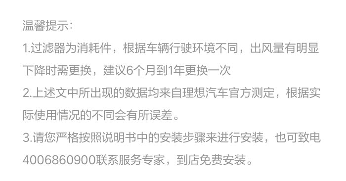 ,自己更换完的要给客服打个电话,或者理想app里联系车主顾问,让他们把这个滤芯复位重新计算寿命!
