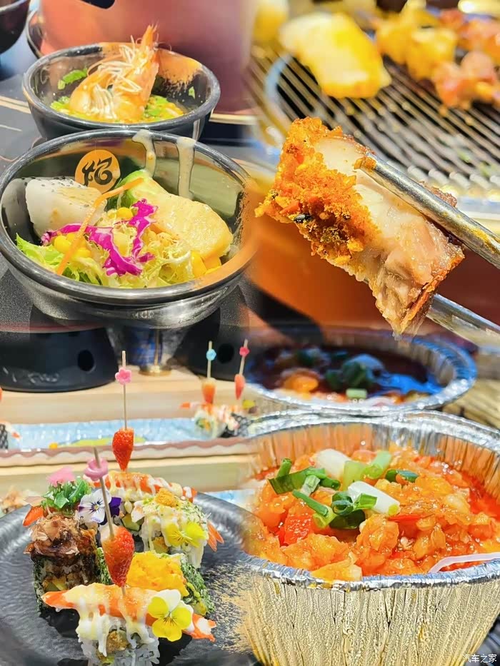 各式食材都很新鲜,自助烧烤,面食、米饭也都很齐全。
