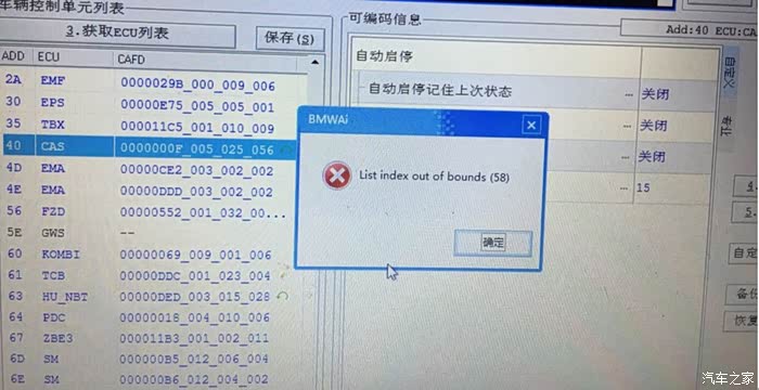 当读取到某模块时,有机会软件会出现报错,点选确定后,选择软件左上角的 断开,右上角关掉软件 重新打开软件-侦测-连接-获取ECU列表,重刷即可。