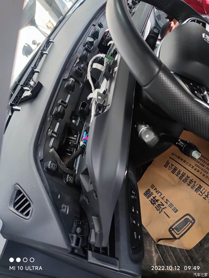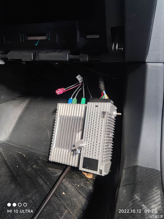 这屏蔽线是连接在储物盒下面的控制器上,所以要先把储物盒拆下来,然后拆出控制器才能更换线束。
