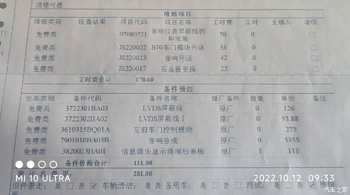 上午9点到店,停好车就跟售后去进行登记,并告诉我这次除了系统升级外,厂家要求对没有更换屏蔽线及后盖板的车辆都要进行更换,时间会比较久让我要耐心等待。