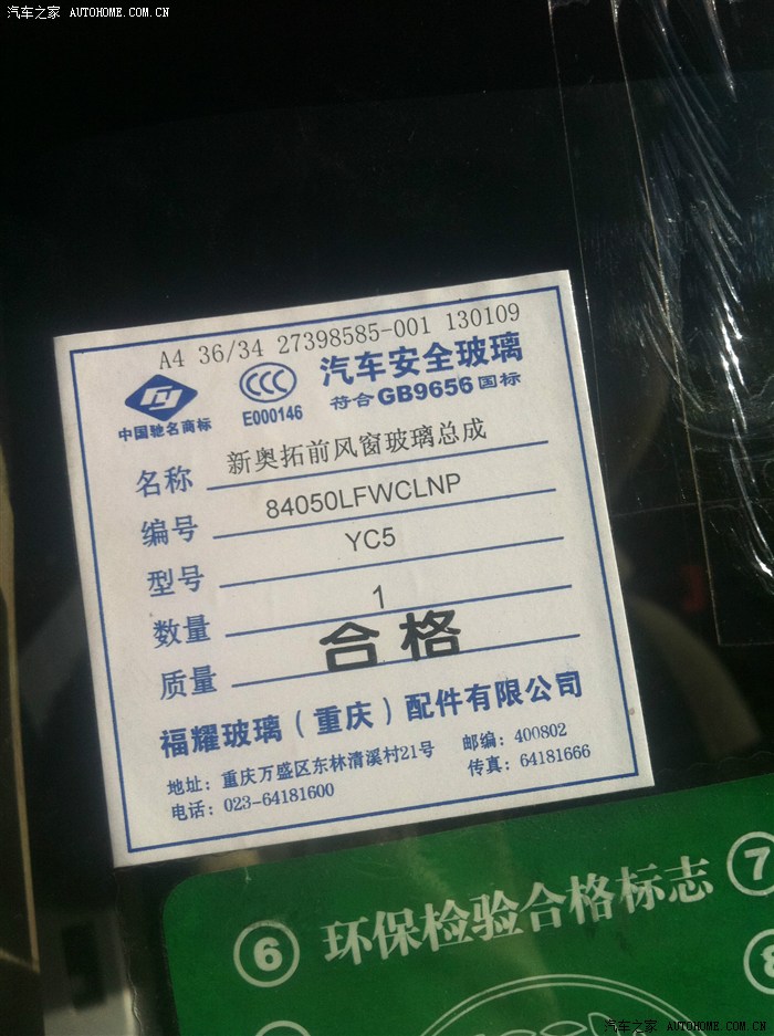 高速路超车时风挡玻璃被石子强吻了,蹦了个小眼,没来得及修复又赶上五月天下雪降温,温差太大玻璃就裂成鱼尾纹了,保险公司的同学过来照了个相,保险公司单玻璃理赔380元,顺便理赔了其他部件,此处省略1000字!自己去了两家福耀玻璃店报价基本一致380元到420之间但都没有现货要从库房调货,时间关系又让保险公司同学联系了一家福耀玻璃店,有关系就是不一样不开票300元包安装!今天发帖的目的是为了提醒大家福耀玻璃的仿品特别多,质量都有缺陷,合格产品标识用刀片很难刮掉,劣质的一刮就掉,看看边角是否平整,表面有没有凹凸不平现象!劣质玻璃时间久了玻璃表面很容易起划痕!因为以前自己家里的福瑞迪在修理厂换玻璃,上路后发现玻璃上有类似水波纹的虚影,看的久了眼花头晕,有点带老花镜的感觉,安装技术不到位,压条不平整,密封胶打的不均匀,高速有明显风噪,像吹口哨,下雨天漏雨。这次特意在旁边看着师傅安装,路测了几天没发现任何质量问题,没有虚影没有漏风现象!玻璃应该是正厂的!
