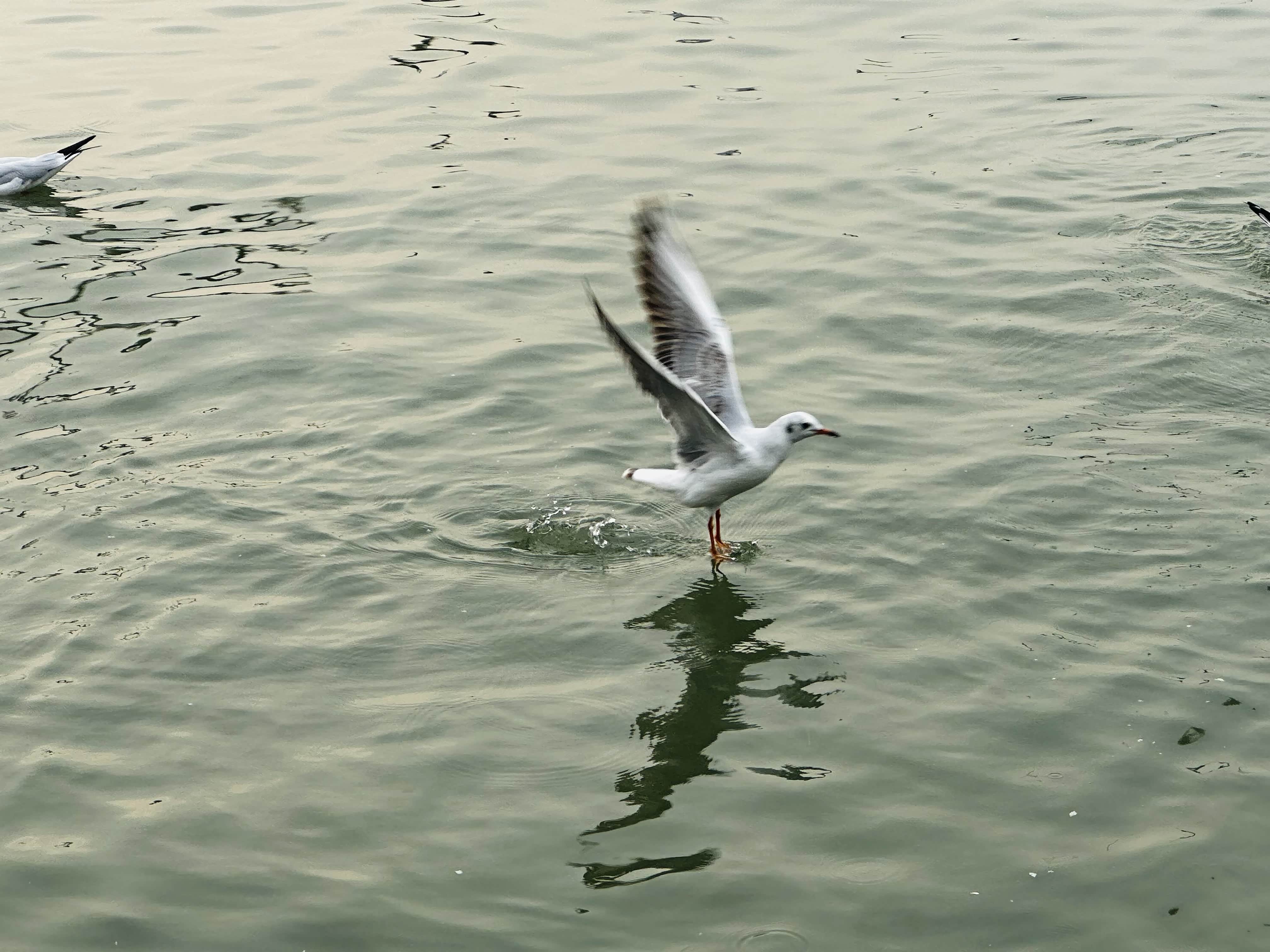 凑近了看红嘴鸥的模样更是惹人喜爱。它们的羽毛洁白如雪,红色的嘴尖很有辨识度。有的红嘴鸥叼到食物后,会得意地在湖面打个旋再落回水里慢慢吞咽;有的则在水面上互相追逐,把湖水画出一圈圈涟漪;而更多的是化身飞行能手,准确的接住游客的投喂美食。这些灵动的小家伙,把冬日的蠡湖变成了充满人与自然和谐共处的乐园。