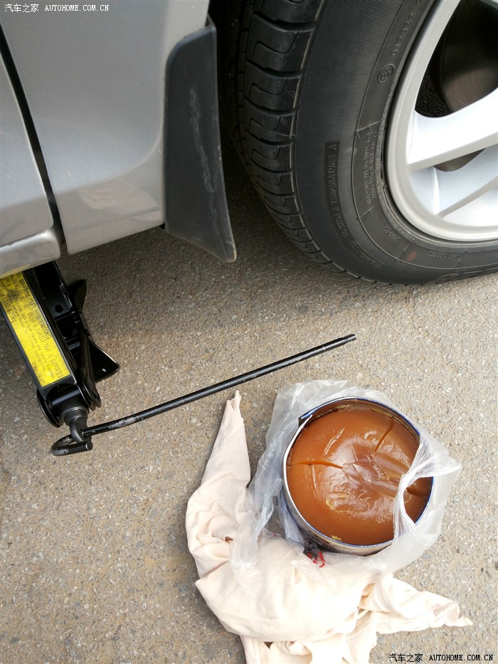 今天下午在发帖子之前我又检查了一下减震打黄油后的情况,发现两个前减震黄油损耗比较多,因为第一次为了试验就没打多少,加上车前面较重导致黄油比后面损耗多些!今天用抹布把原有剩余都擦掉,重新加量打上黄油,顺便也把轮胎上夹的小石子清理一下!