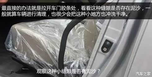 1.后备箱胶条、边角及备胎槽,主要闻味道、看泥沙。