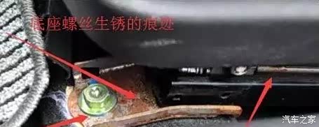 2.安全带根部和座椅底部,把安全带拉出来到最后看有无颜色不同的水迹或霉斑,看座椅底部的滑轨和螺栓有无明显锈蚀。