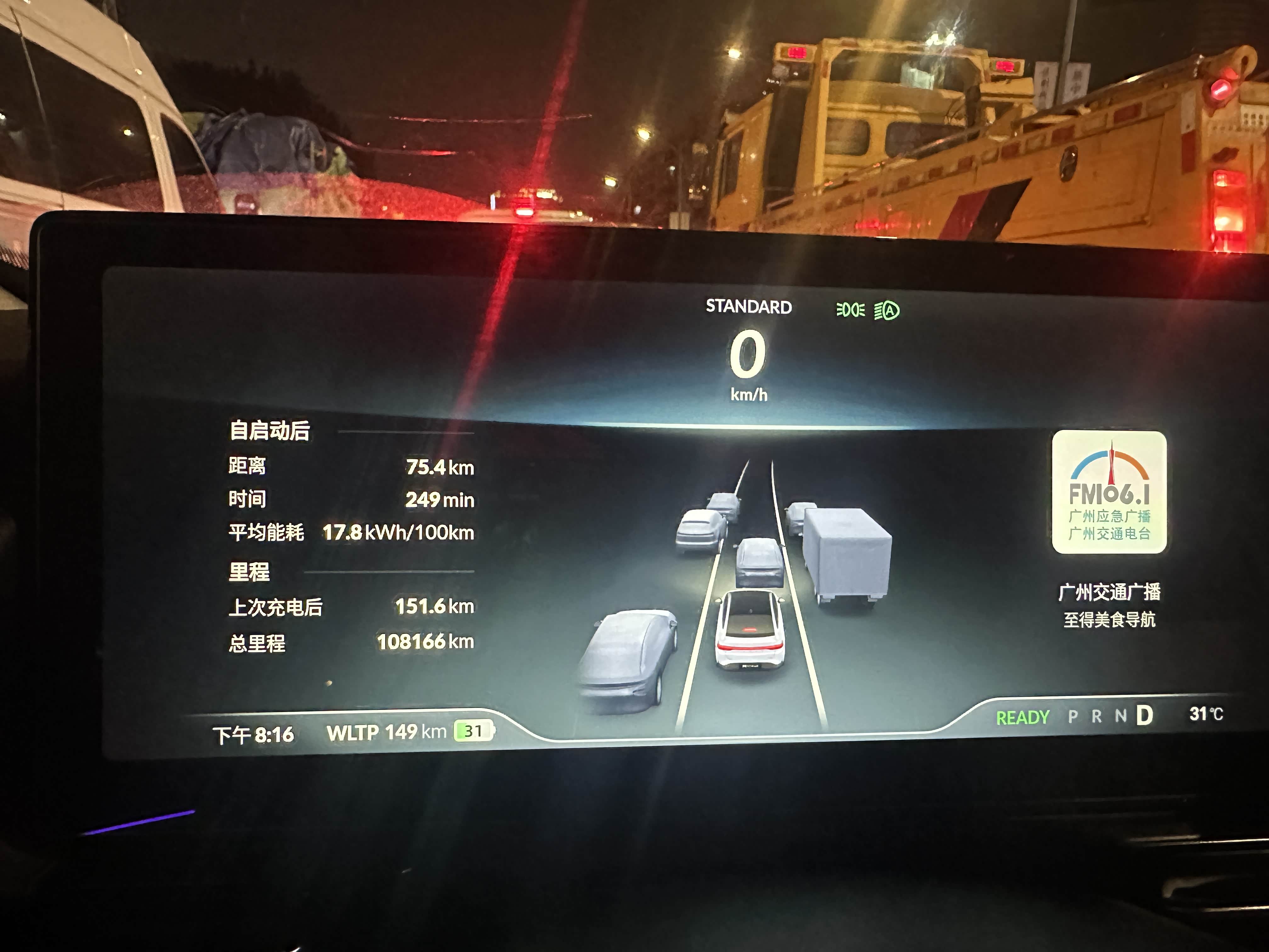 在高速公里使用感比较优秀,导航开启后出现方向盘标志就是代表可以使用辅助驾驶了,这车因为是高配带走车头两个激光雷达,所以辅助驾驶方面可以自动变道,也会根据你导航路线提前变道来出高速口,超车和减速基本都可以根据你调节的距离来实现。