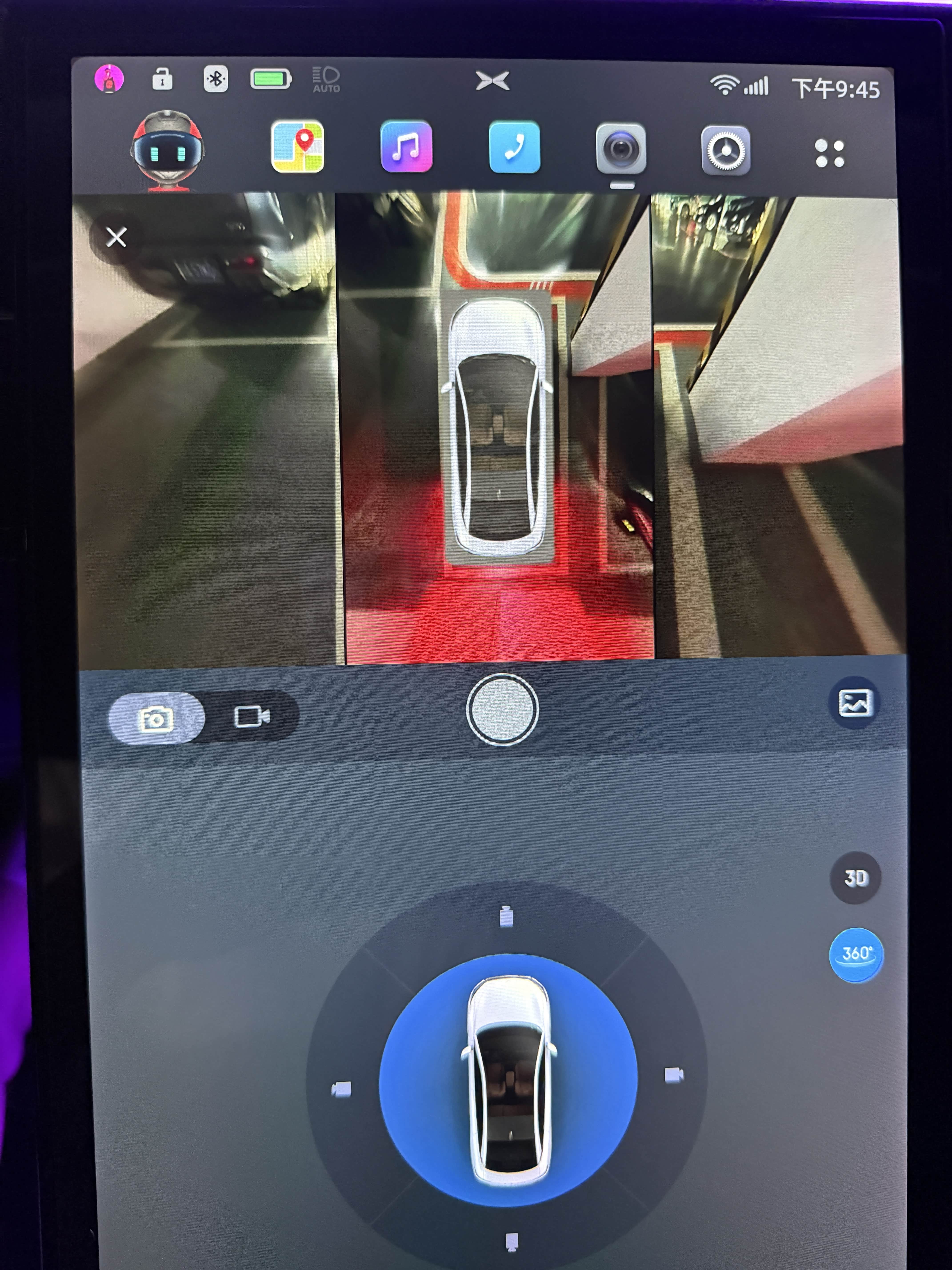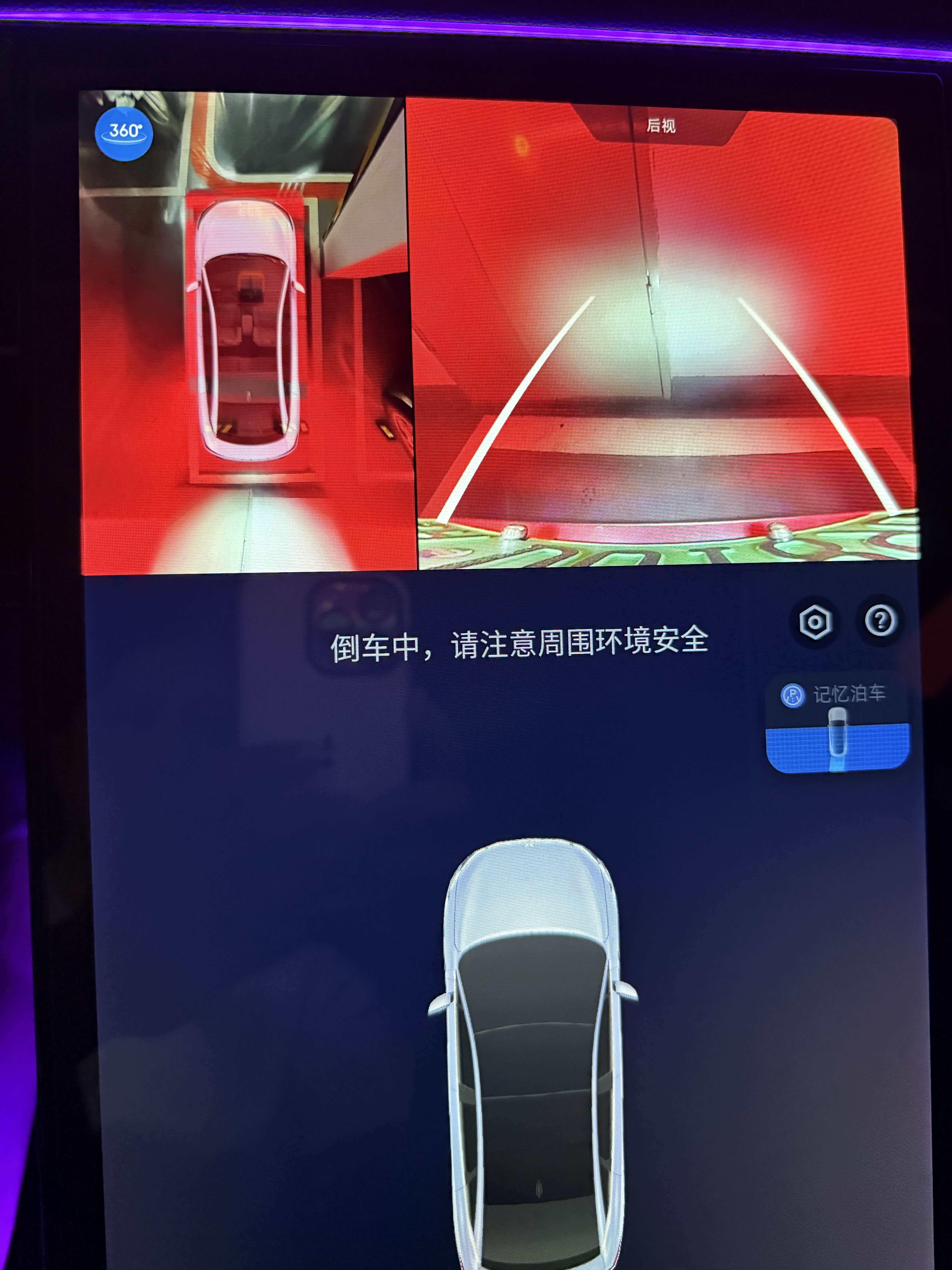 倒车影像和360也是很不错的配置使用,向上拨档把就是倒车,会马上出现车顶360的画面和左右两边的画面,这个对新车小白司机特友好,不用怕停车一些位置看不清,而且这车还有自动泊车功能,当它识别到停车位线时候会在屏幕出现车位,只需要按一下车位图案就可以自动倒车进入,十分方便。