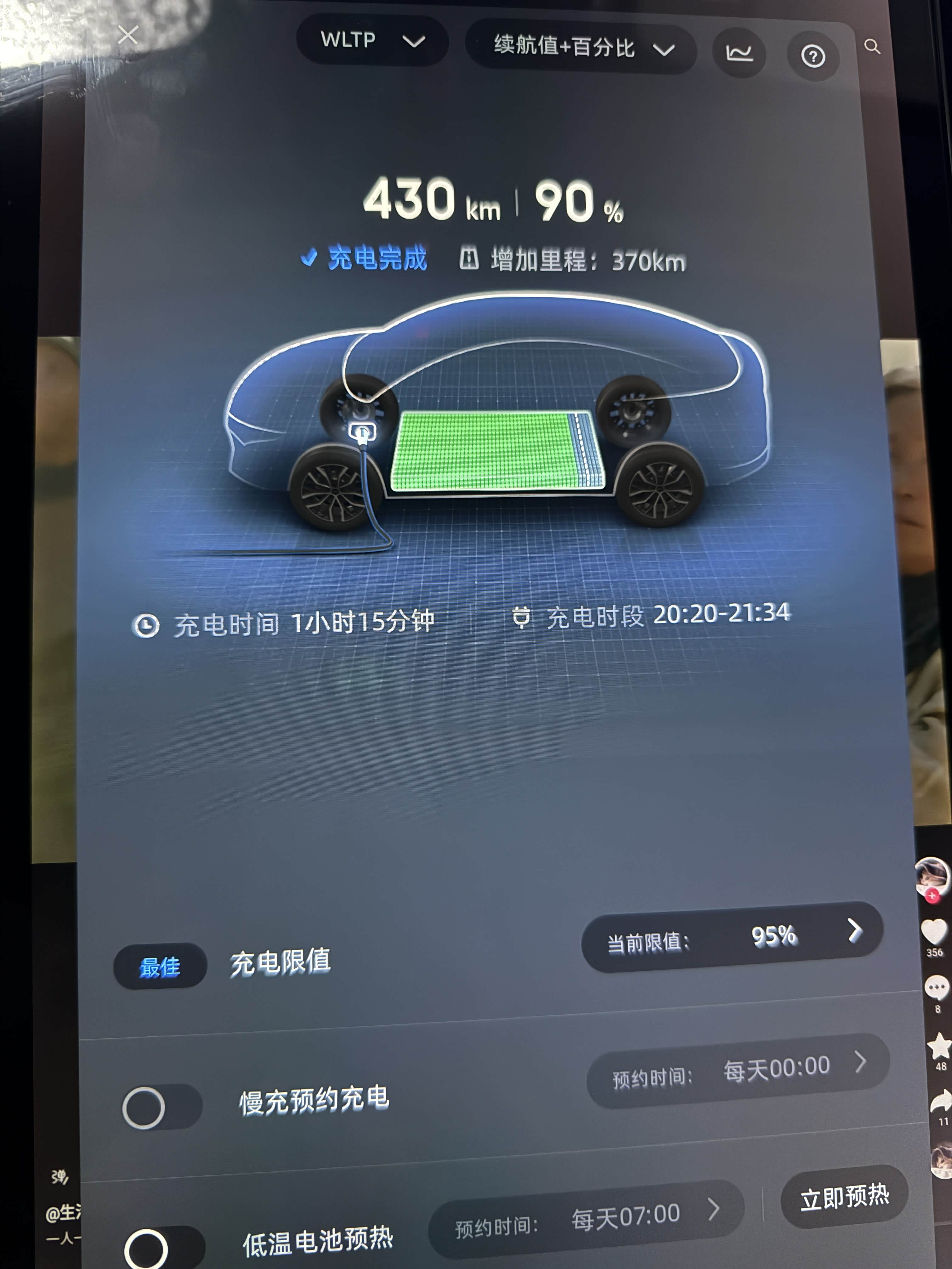 我这台版本是三元锂电池,毕竟没有800v的基础,所以充电方面速度不是特别快,20%-90%都要一个钟多10分钟左右。但是三元锂电池确实是在冬天表现比较好,不会说天冷就掉电厉害。